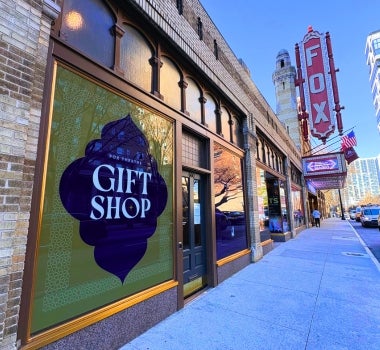 Our curated collection offers fashion-forward apparel inspired by the theatre's iconic design, alongside thoughtfully crafted keepsakes: posters, postcards, pins, and collectible souvenirs. With limited-edition pieces and new merchandise debuting throughout the year, the Gift Shop offers a distinctive way to carry the Fox with you.
