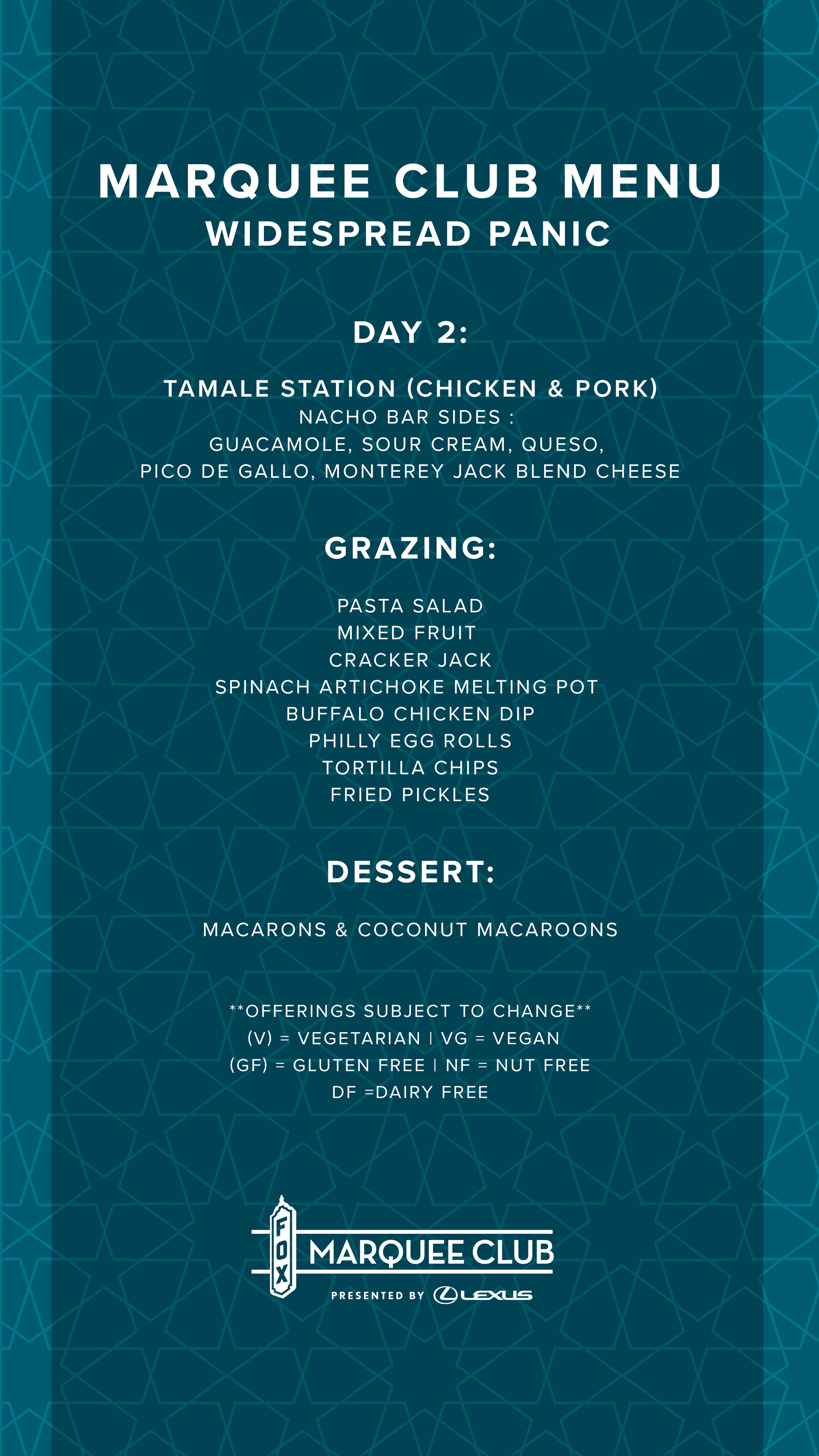 When purchasing tickets online, you’ll see a pop-up offering the option to add Marquee Club access to your order. Select “yes” to receive both your show ticket and a pass to the Marquee Club presented by Lexus.