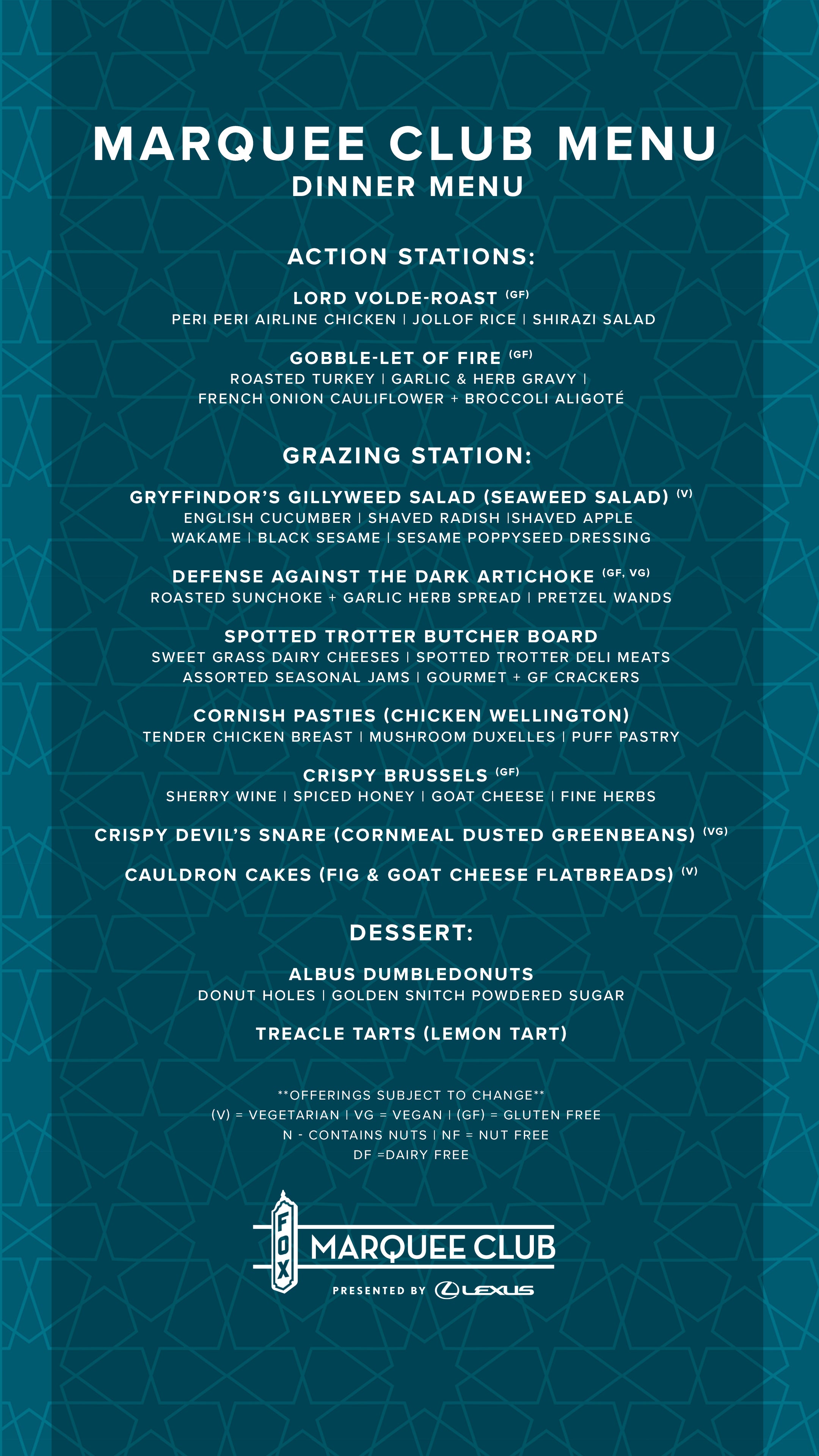 Guests of the Marquee Club presented by Lexus enjoy early entry, pre-show food and desserts from a seasonal menu crafted by our in-house chef, access to premium bars selling signature cocktails, wine, and beer, private restrooms, and exclusive rooftop views. Once you’ve experienced a show with Marquee Club access, there’s simply no going back.